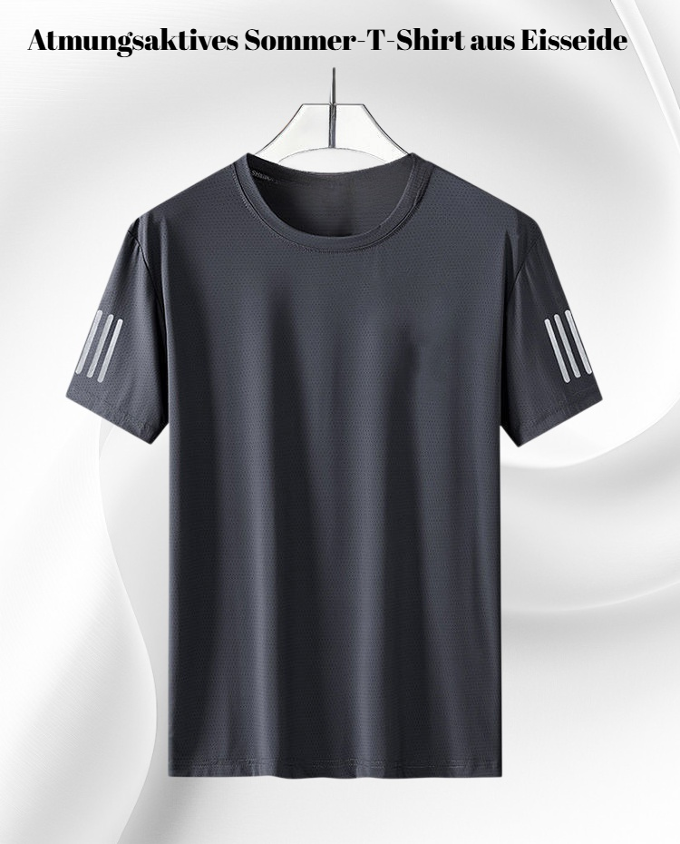 Atmungsaktives Sommer-T-Shirt für Herren aus Eisseide, locker geschnitten, schnelltrocknend, Rundhals, auch in Übergrößen erhältlich. Ideal für heiße Tage und sportliche Aktivitäten.