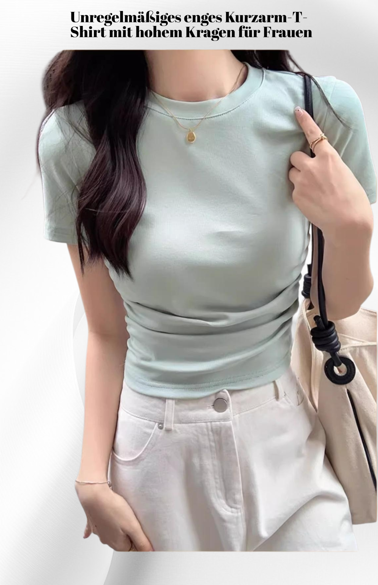 Unregelmäßiges enges Kurzarm-T-Shirt mit hohem Kragen für Frauen – Sommermode