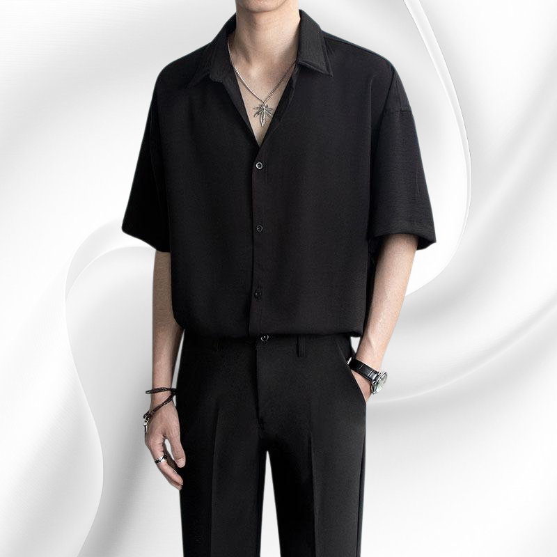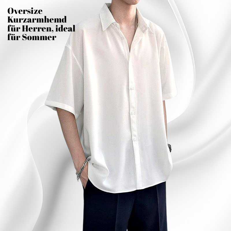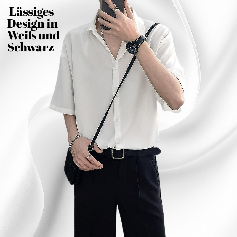 Oversize Sommer Kurzarmhemd für Herren in Weiß und Schwarz, atmungsaktiver Stoff, bequemer Schnitt, vielseitig kombinierbar, ideal für Freizeit und Alltag.